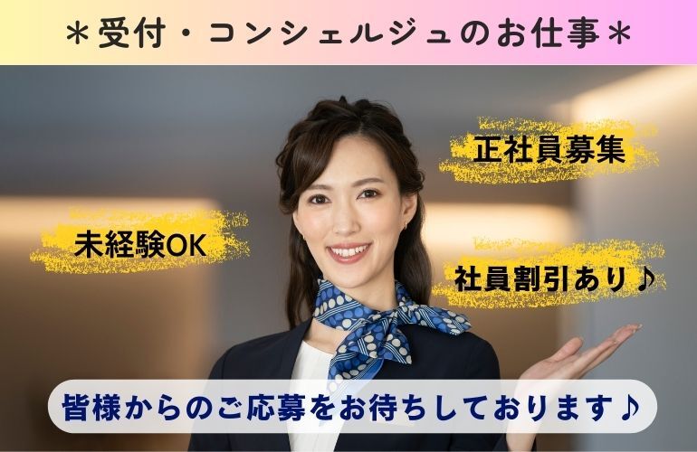 アピールポイント 【麻布台ヒルズ徒歩圏】2026年春:麻布台エリアに新規オープン*有名人も多数通うラグジュアリーな再生医療クリニックで... 業務内容 ■業務内容≪受付・医療コンシェルジュ≫